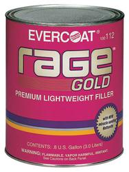 Compare Maximum number of 4 items selected Representative Image Evercoat Rage Gold 1 Gallon Body Filler - 112 Part #: 112 Line: EVC Evercoat Rage Gold 1 Gallon Body Filler 30 Day Limited Warranty Color: Yellow Type: Polyester Filler Volume: 1 Gallon Waterproof: No Substrate Material: Aluminum, Galvanized Steel, Stainless Steel, Steel, SMC Container Size: 1 Gallon Hardener Included: Yes VOC Content: 0.35 Lbs./Gallon Stain Free: Yes Sandable Cure Time: 5 Minute Show More Show Less