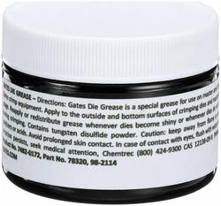 Compare Maximum number of 4 items selected Gates Power Crimp Die Grease - 78320 Part #: 78320 Line: GAT Gates Power Crimp Die Grease 1 Year Limited Warranty