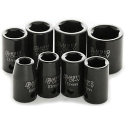 Compare Maximum number of 4 items selected Performance 10mm, 11mm, 12mm, 13mm, 14mm, 16mm, 17mm, 19mm Socket Set 3/8 Inch Drive 6 Point - M595DB Part #: M595DB Line: PFM Performance 10mm, 11mm, 12mm, 13mm, 14mm, 16mm, 17mm, 19mm Socket Set 3/8 Inch Drive 6 Point 1 Year Limited Warranty Overall Length (in): 7 Inch Socket Size (mm): 10mm, 11mm, 12mm, 13mm, 14mm, 16mm, 17mm, 19mm SAE Or Metric: SAE Number Of Points: 6 Socket Type: Impact Drive Size (in): 3/8 Inch Show More Show Less